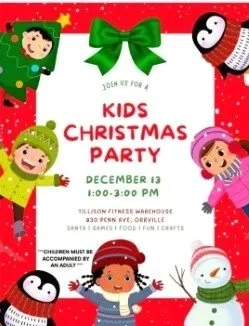 Join us for our 2nd Annual Kid’s Christmas Party at Tillison Fitness Warehouse Gym!!